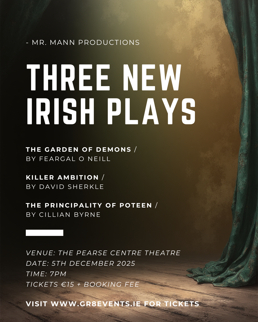 Three New Irish Plays - Mr. Mann ProductionsBased on the success of our debut event on June 3rd, 2025, Mr. Mann Productions is once again proud to present three new plays by Irish playwrights.
